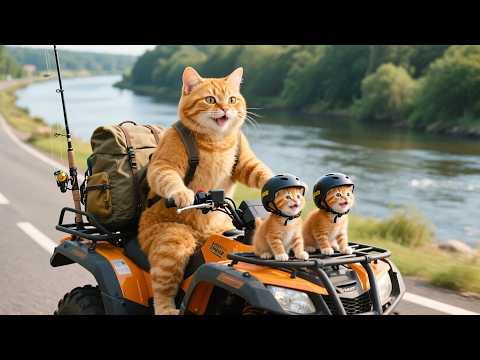 Papai gato leva gatinhos ruivos para pescar - Momentos hilários de acamp...
